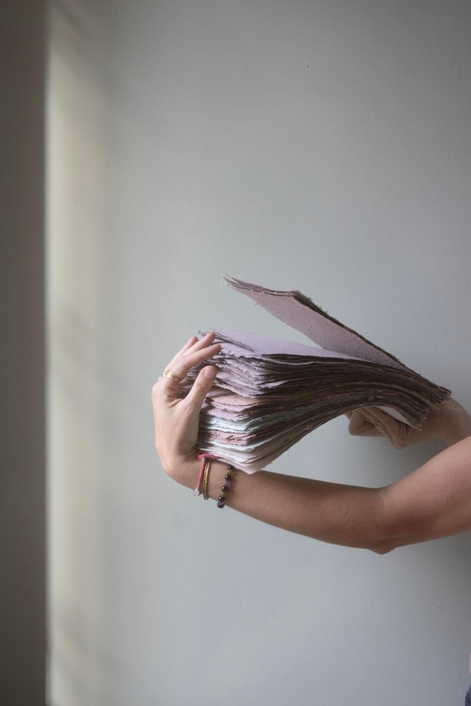 Il processo della creazione di un singolo foglio è lungo, la lavorazione è lenta, ma intrisa di amore e pazienza; la soddisfazione è tanta quando tra le mani si tengono risme di carta riciclata dove dentro ad ogni foglio vi è custodita la singola storia e dunque la meravigliosa unicità.