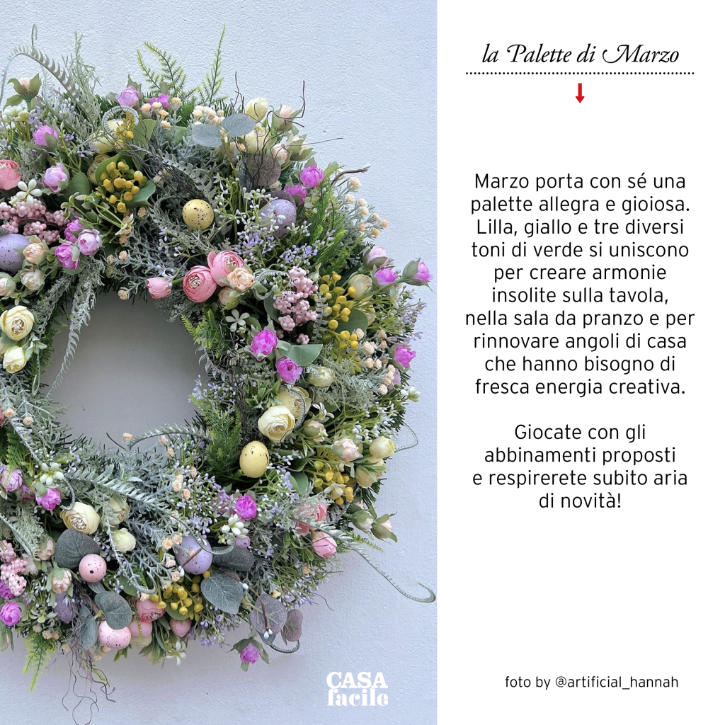 Marzo porta con sé una palette allegra e gioiosa. Lilla, giallo e tre diversi toni di verde si uniscono per creare armonie insolite sulla tavola, nella sala da pranzo e per rinnovare angoli di casa che hanno bisogno di fresca energia creativa.