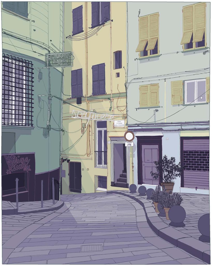 Ogni volta che realizza un disegno è come se realizzasse un sogno. L’uso esteso delle linee e dei colori tenui, insieme alla scelta di rappresentare scorci architettonici liguri e porte di tutto il mondo, sono gli elementi caratteristici delle sue illustrazioni, ne troverete una selezione nel suo profilo.
