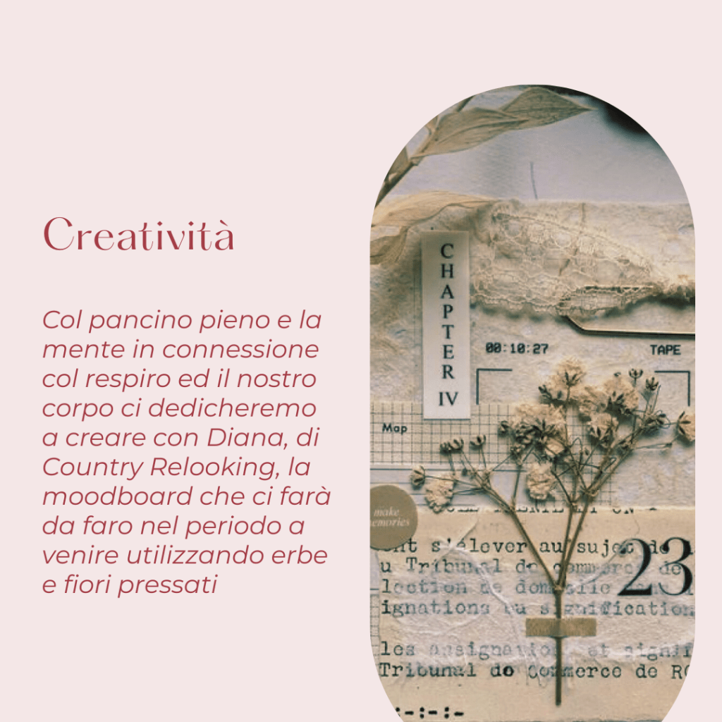 Dopo aver nutrito il corpo e lo spirito, saremo pronti per un’esperienza creativa unica. Io vi guiderò attraverso un emozionante workshop dove avremo l’opportunità di creare moodboard primaverili utilizzando i fiori pressati provenienti dal suggestivo Giardino Emozionale dei Sentieri di Piume di @lagualdavecchia, vecchi spartiti, carta riciclata realizzata per noi da @paper_care_lab.