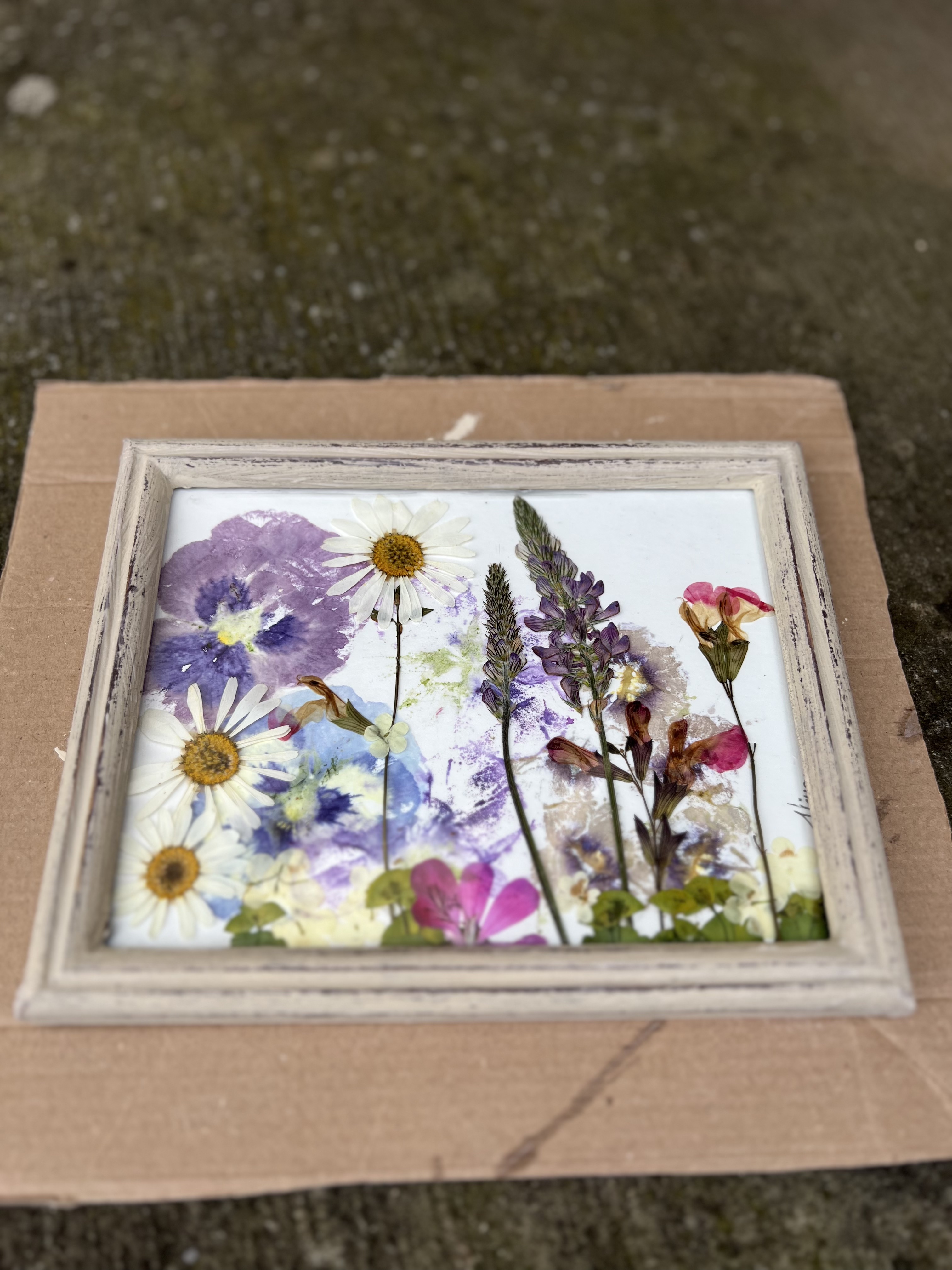 Un workshop per imparare a trasformare una vecchia cornice in stile shabby e creare composizioni uniche utilizzando fiori pressati e martellati.