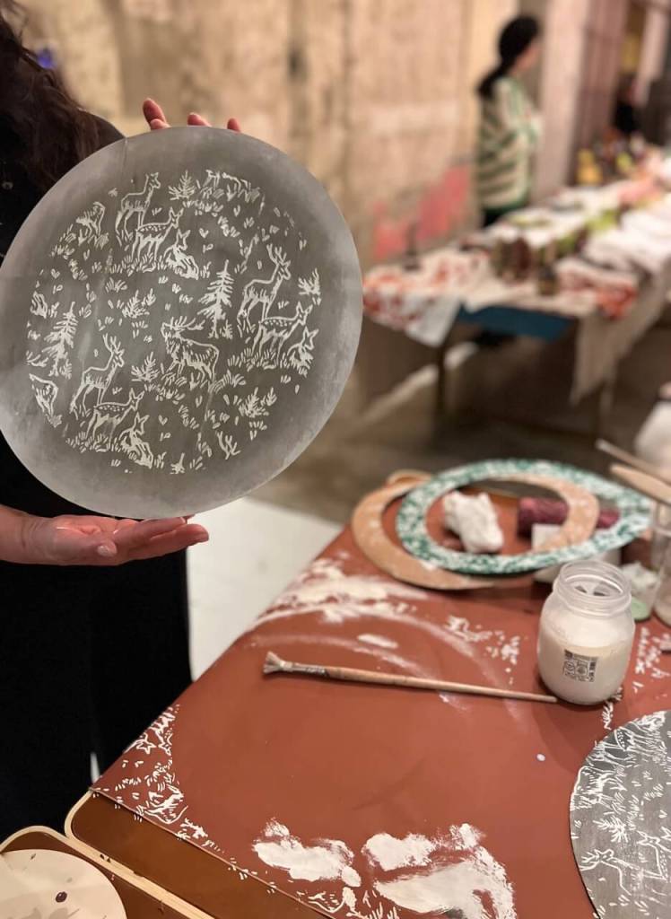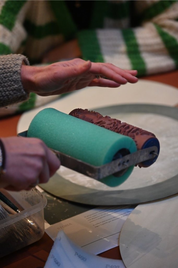 Un workshop per imparare a decorare la tua tavola con i colori del bosco, realizzando un sottopiatto con la tecnica del rullo decorativo.