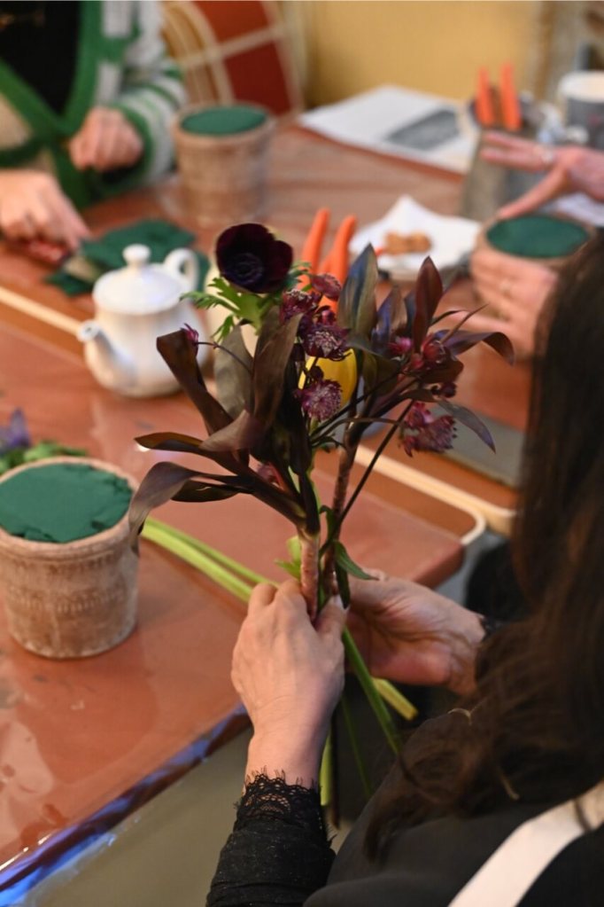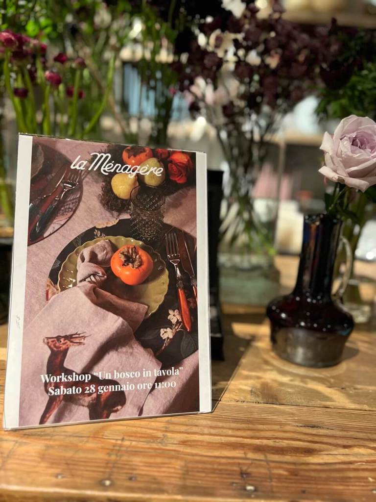 Durante questo workshop i partecipanti hanno realizzato una composizione floreale per la tavola con la spugna e fiori dai colori autunnali con la fiorista de La Ménagère.